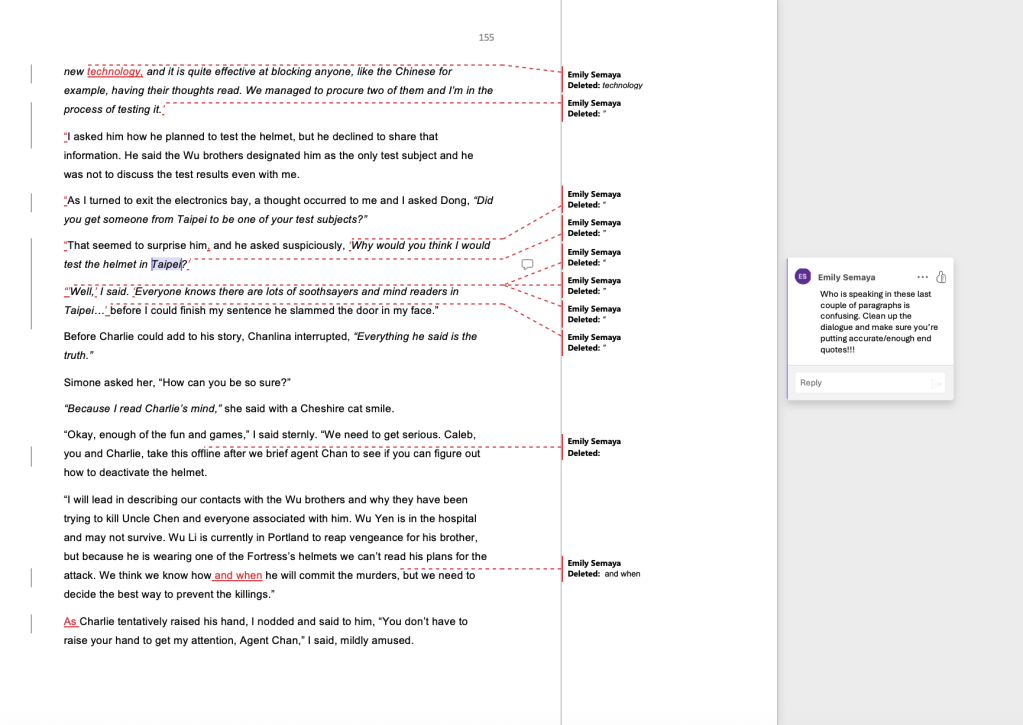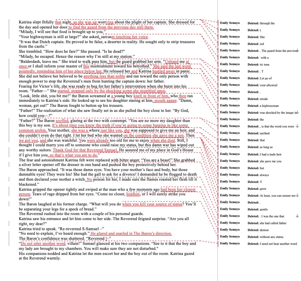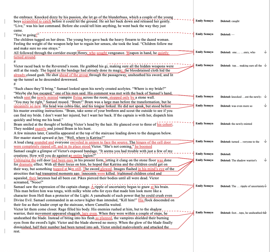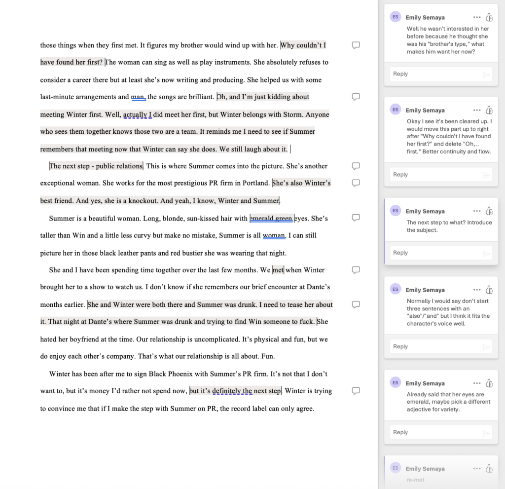 Examples of my editing style and comments: